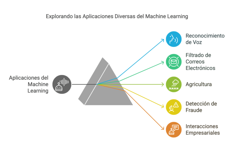 Las aplicaciones del machine learning son diversas y abarcan múltiples sectores. En el reconocimiento de voz, el aprendizaje automático permite a las computadoras interpretar el habla humana. También se utiliza en el filtrado de correos electrónicos, optimizando la seguridad y la productividad. En el ámbito de la agricultura, el machine learning ayuda a predecir las condiciones climáticas y mejorar los rendimientos de las cosechas. Además, en el sector empresarial, se emplea para detectar fraudes y optimizar interacciones con clientes a través de chatbots.